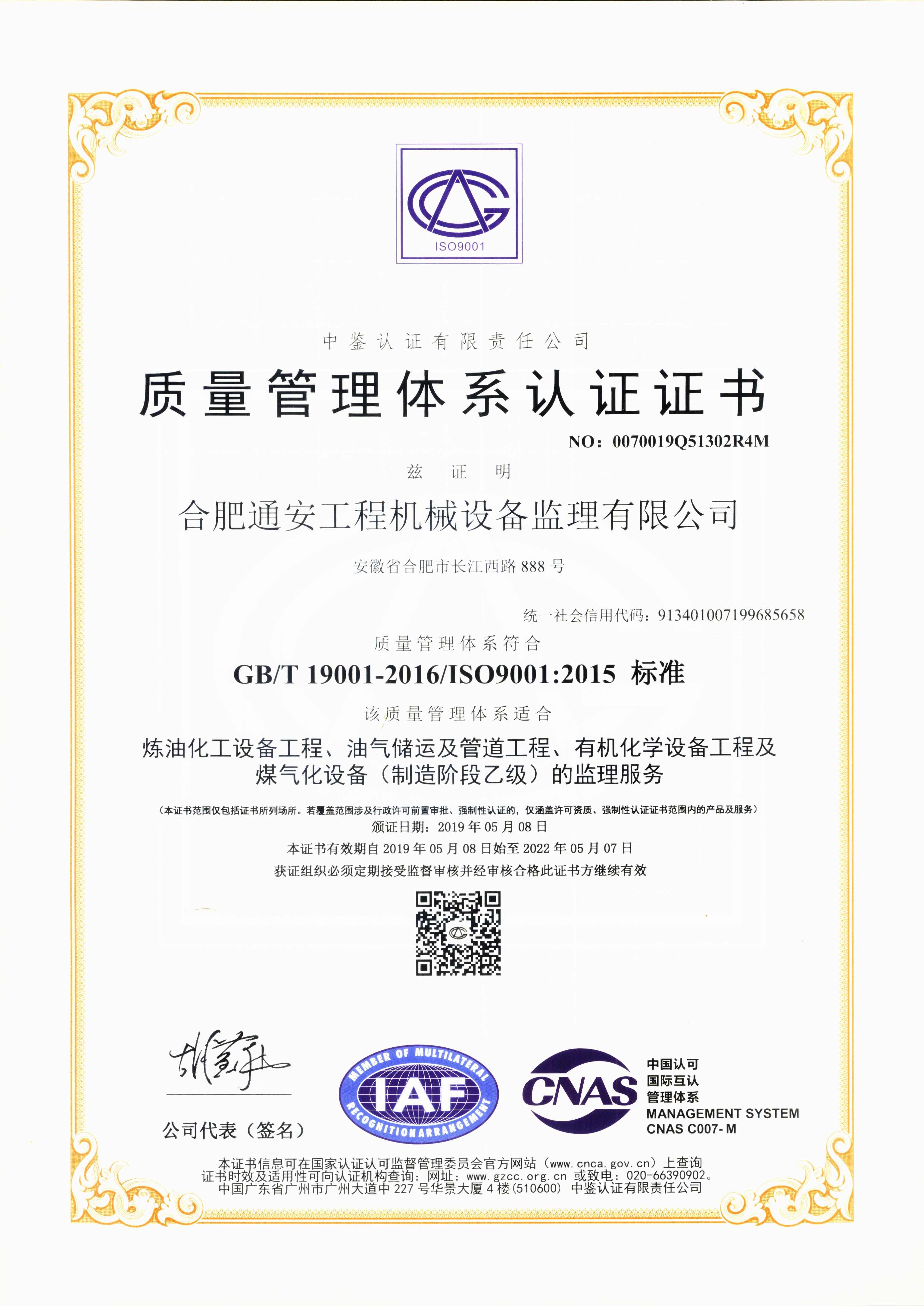 質(zhì)量管理體系認(rèn)證證書(shū)