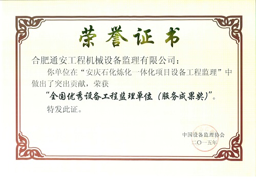 第三屆全國優(yōu)秀設(shè)備工程監(jiān)理單位(服務(wù)成果獎)
