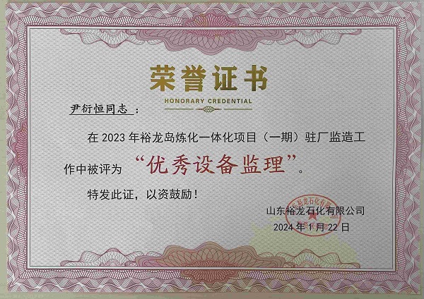 2023年山東裕龍優(yōu)秀設(shè)備監(jiān)理