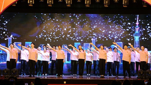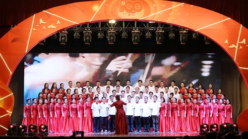 演出的最后,全場人員一同揮舞著手中的黨旗,共同唱響《沒有共產(chǎn)黨就沒有新中國》。雄壯有力的歌聲經(jīng)久不息,為建黨100周年獻(xiàn)上最真摯的祝福。