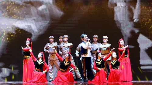 整場演出以大家喜聞樂見的歌曲、舞蹈、詩朗誦、合唱等形式傾情演繹。歌曲《唱支山歌給黨聽》唱出了對黨的無限忠誠與熱愛。舞蹈《理想照耀中國》《燈火里的中國》彰顯了革命理想高于天的崇高境界,展望未來中國鋪陳開新的美好前景。表演唱《青春之我》《我們都是追夢人》與歌舞《少年》展現(xiàn)了新一代青年奮勇向前、逐夢時代的精氣神。韻律操《奔跑的青春》帶領(lǐng)全場觀眾感受青春的脈搏,體悟年輕的律動。歌曲《懷念戰(zhàn)友》表現(xiàn)了戰(zhàn)士誓死守衛(wèi)祖國邊疆的愛國情懷和戰(zhàn)友之間的真摯情感。詩朗誦《清貧(節(jié)選)》將一名優(yōu)秀共產(chǎn)黨員的光輝形象和感人故事帶回我們眼前。小合唱《喀秋莎》歌詠了經(jīng)過戰(zhàn)火洗禮的動人愛情。大合唱《紅軍不怕遠(yuǎn)征難》再現(xiàn)了共產(chǎn)黨人二萬五千里長征路上的艱苦卓絕,《在太行山上》 傳頌了抗日軍民的必勝信心。