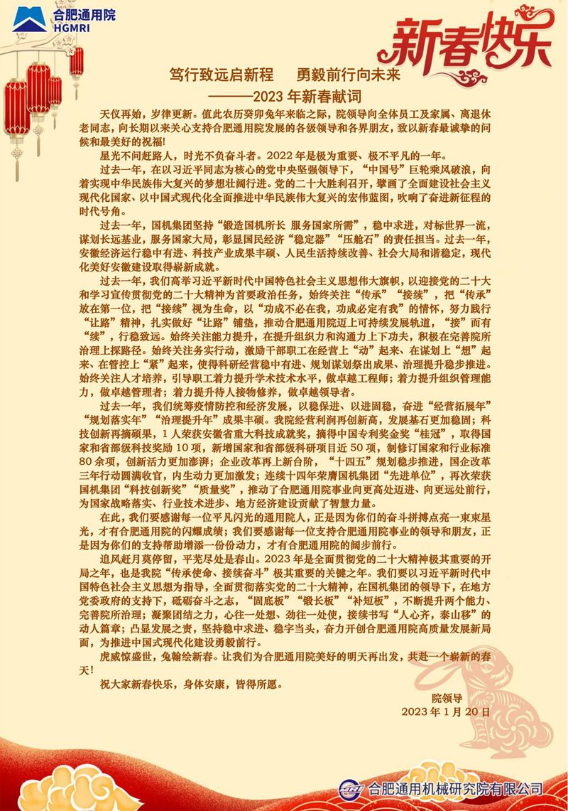 篤行致遠啟新程 勇毅前行向未來 ——2023年新春獻詞